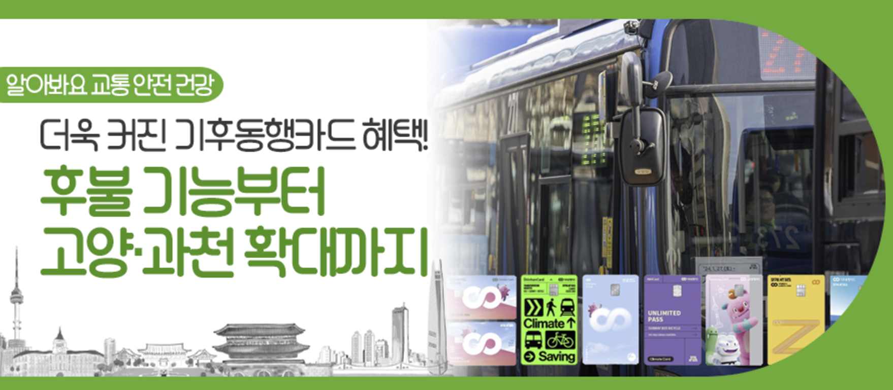 더욱 확대 된 서울기후동행카드 사용하면서 교통비 절약하시길 바랍니다.