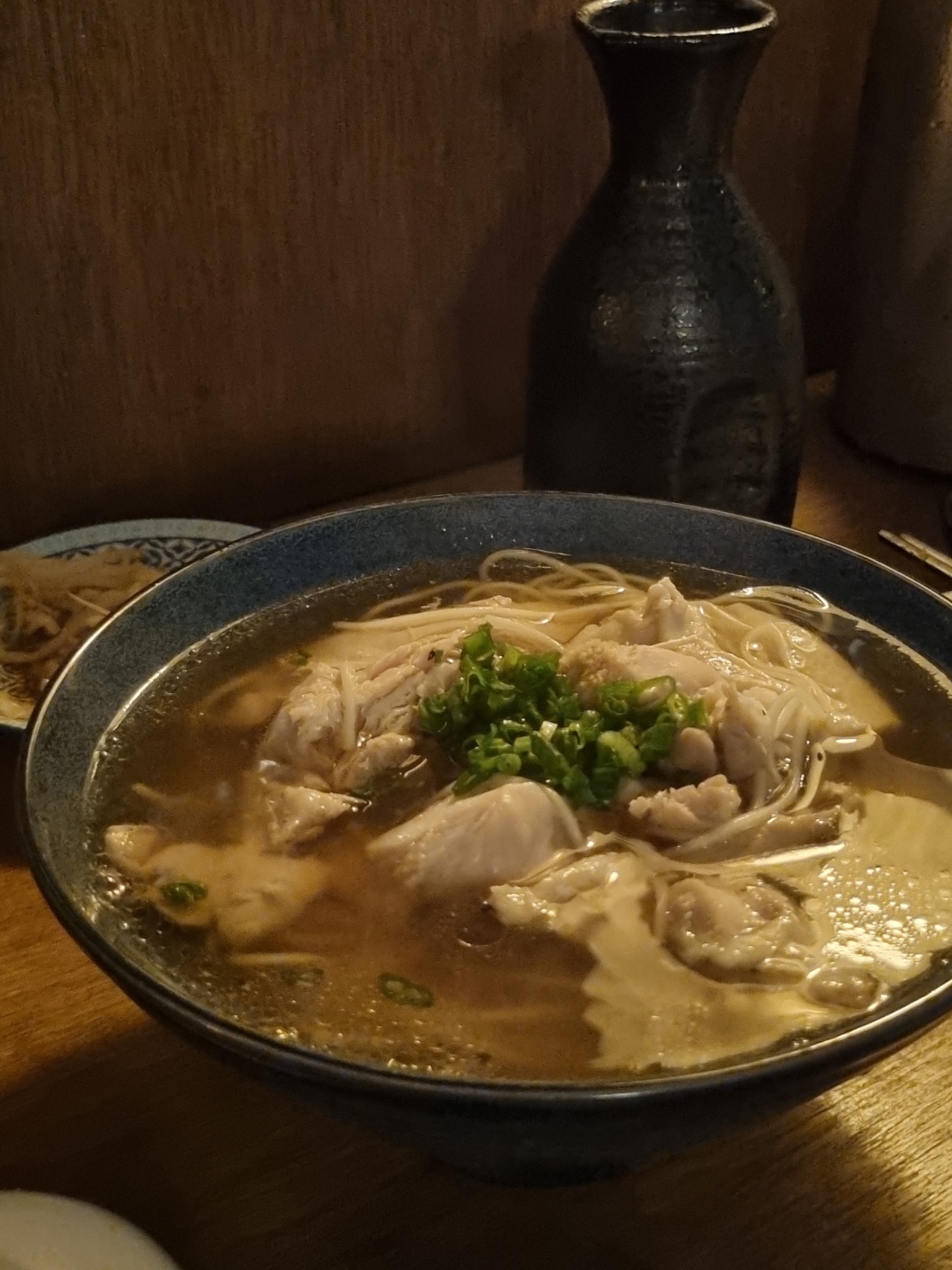 정식 메뉴에 없는걸 보니 이날의 메뉴였던 것 같아요. 아마 차슈 소면과 치환되는 메뉴 같기도 합니다. 닭고기 소면? 뭘까 했는데 구수한 닭국물에 소면이 있고 특유의 일본음식 향이 나는 그런 맛이었어요. 마지막 국물 안주 먹기 딱이었어요