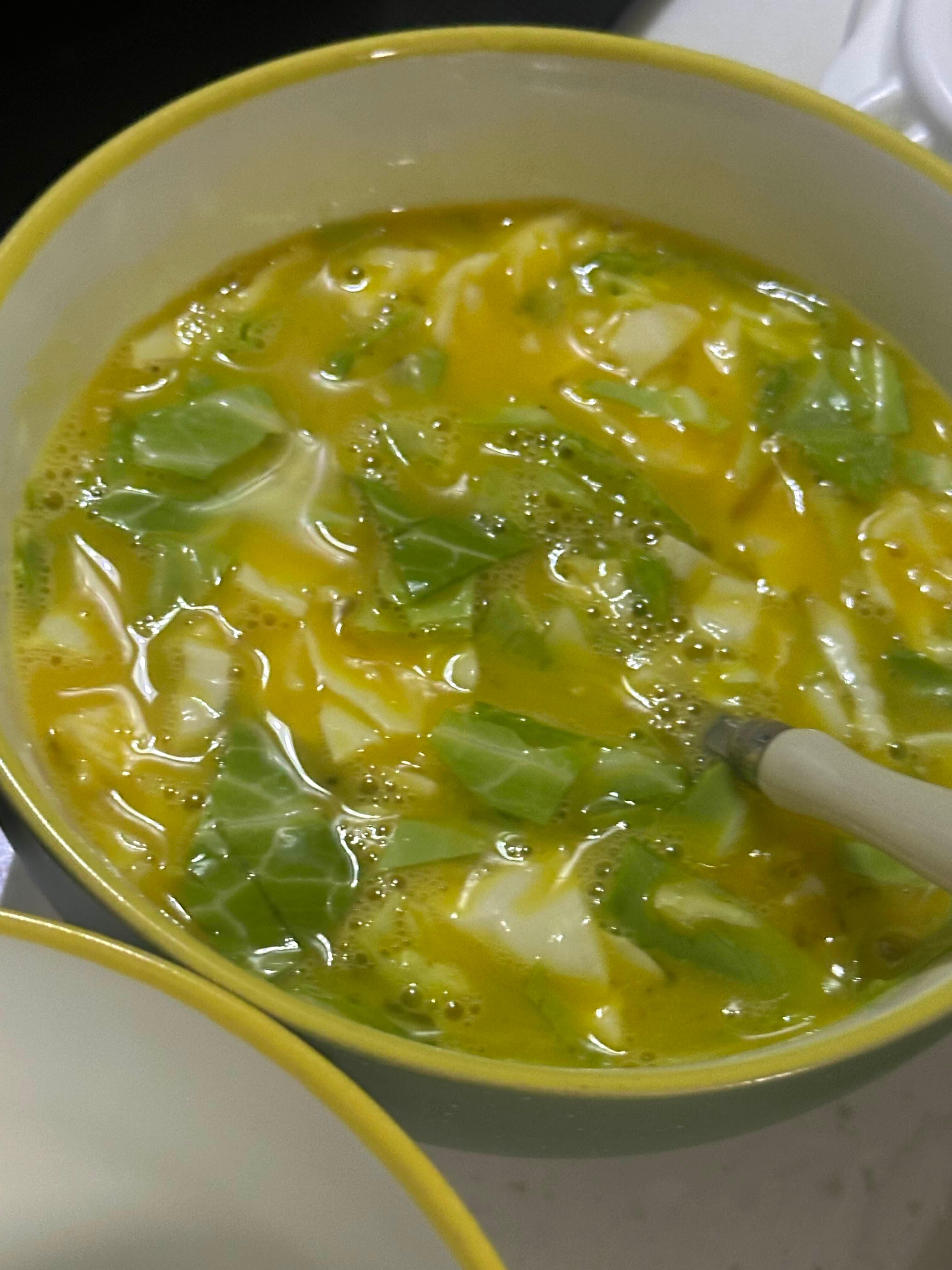 1) 계란 2줄 기준 - 계란 4개와 양배추를 취향껏 풀어줍니다.