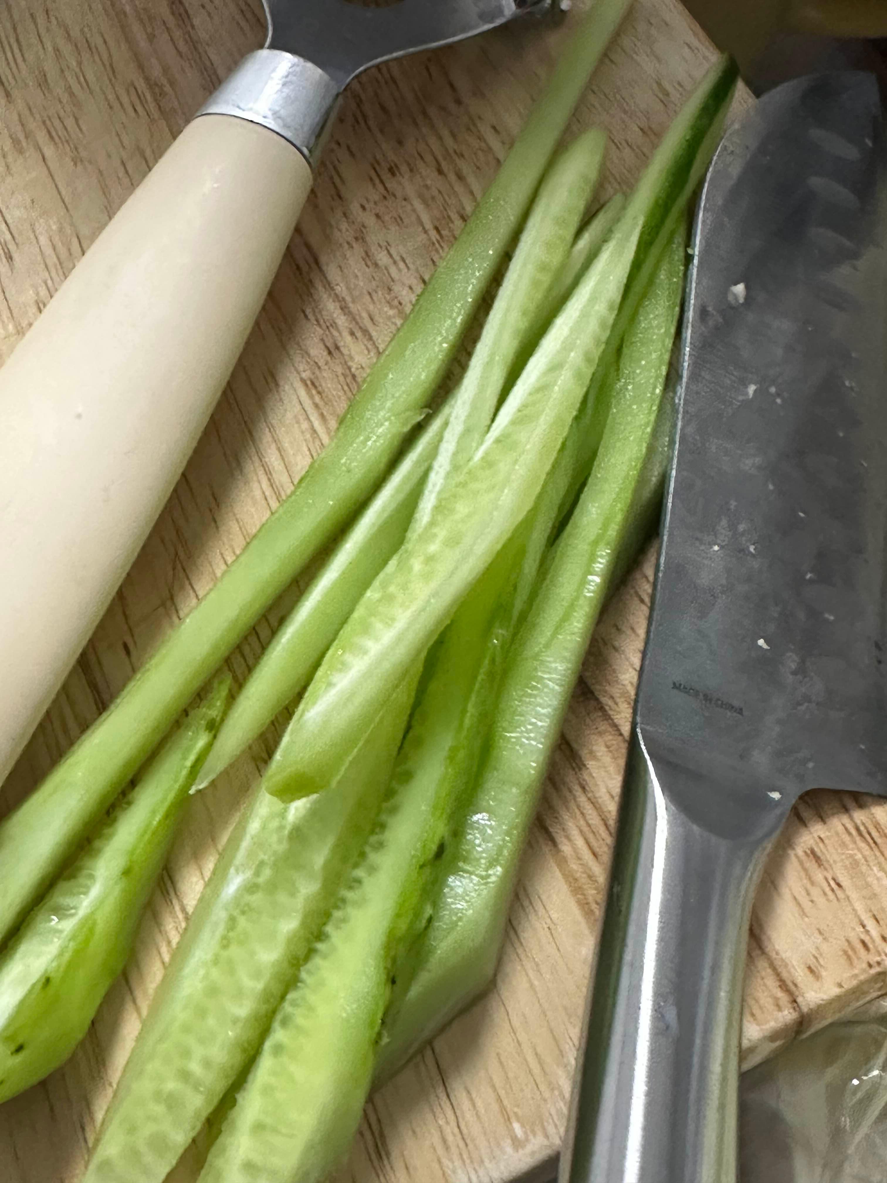 2) 텁텁함 방지를 위해 오이를 썰어줍니다 (생략가능)