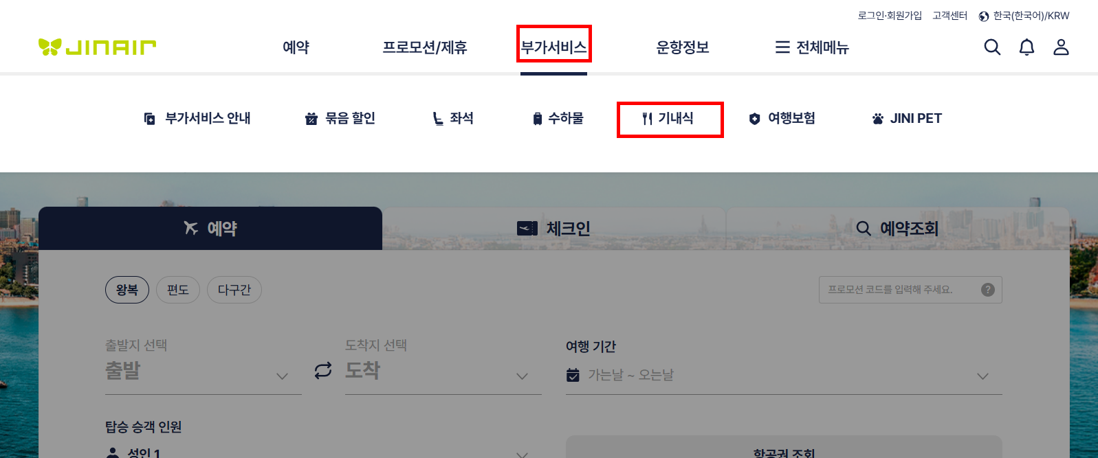 항공은 '진에어' 탑승해서 다녀왔고, 추가 금액 지불하고 부모님만 스트레치석과 비상구석으로 변경했습니다. 진에어는 간식거리는 주는데 기내식은 따로 홈페이지에서 부가서비스 예약하셔야합니다. 미리해야 품절도 안되어요! 미리하는 걸 추천드립니다. 사실 젊은 사람들은 기내식을 스킵해도 되는데 부모님이나 아이가 있다면 미리 주문하세요.