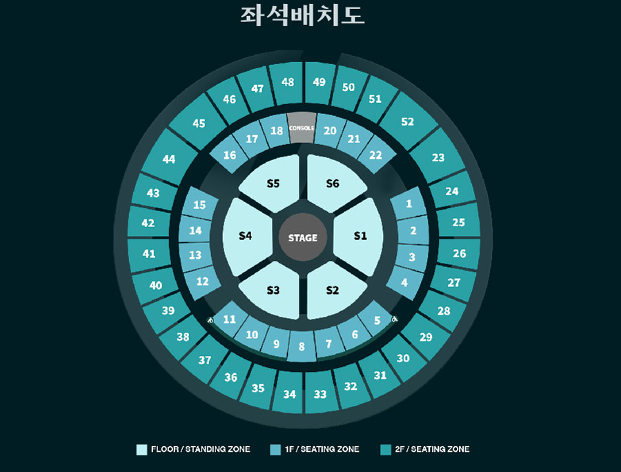 이번 피날레 콘서트 좌석배치도는 위와 같았어요. 스탠딩/1층/2층 이렇게 구성되었답니다. 가수 공연마다 좌석 층수를 부르는건 달라져요. 어느 공연은 1층 > 2층, 2층 > 3층 이렇게도 부르니 참고하세요.