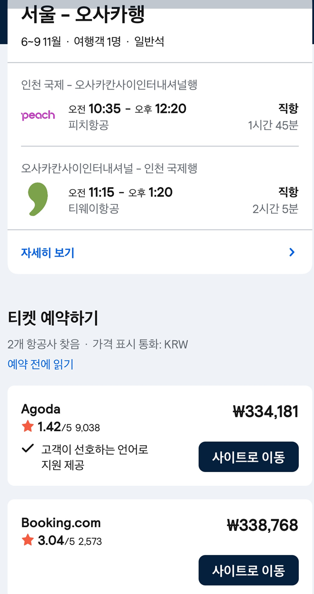 이런 플랫폼은 전체 항공사와 여행사의 가격을 비교해주기 때문에, 최저가 항공권을 빠르게 찾을 수 있습니다.