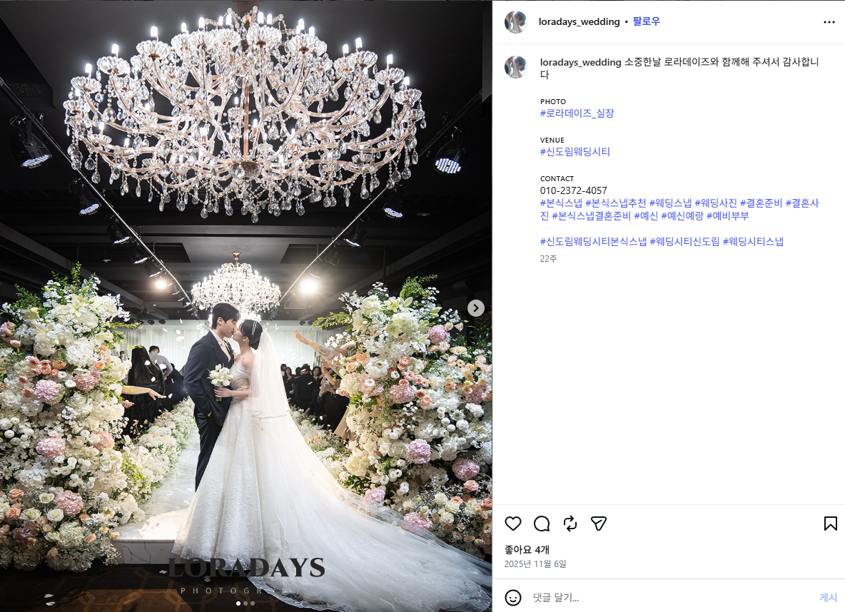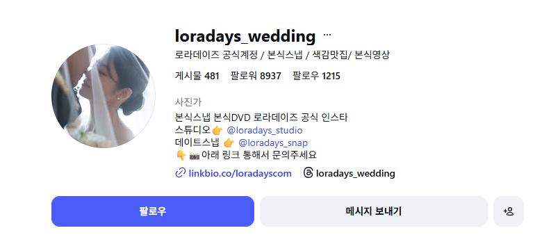 인스타 링크 https://www.instagram.com/loradays_wedding/