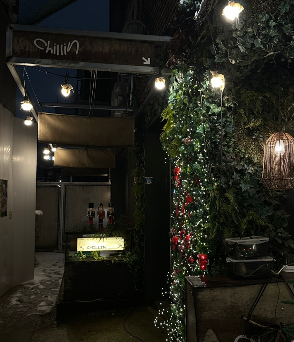 대학로, 혜화에 대로변이 아닌 골목 안에 위치한 카페&바(술집)인 칠린이예요. 저는 크리스마스 시즌에 방문하여 너무나도 사랑스러운 트리가 있어서 홀려서 방문하게 되었습니다.