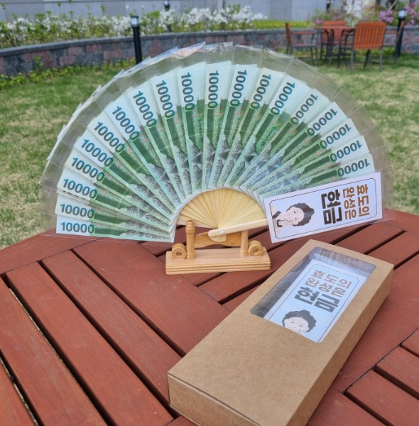 부모님께서 돈으로 부채질 하는 액션을 보고싶은 분들께 또 다른 귀여운 선물인 용돈 부채를 추천해드립니다. 부채 형태를 구매하시고 비닐 틀에 준비된 현금을 꽂기만 하면 현금 부채가 완성이 됩니다. 부모님께서 용돈 부채를 사용하실 때 가족들 모두 재밌게 웃을 수 있는 이벤트가 될 수 있습니다.