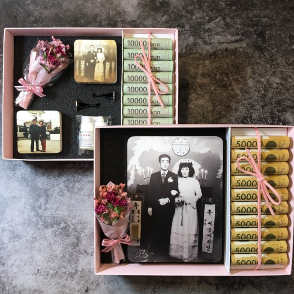 한번 오픈해서 끝나는 이벤트가 아니라 오래 두고 간직할 수 있는 선물을 원하시는 분들께는 액자형태의 용돈 상자를 추천해 드립니다. 부모님의 사진을 다시 인화하여 감성을 살리는 방식과, 요즘 트렌드에 맞는 일러스트 형태로 제작되는 형태 등 다양하게 상품들이 있습니다. 옹돈 또한 정성스럽게 함께 동봉되어 있어서 순간의 용돈 이벤트 뿐만 아니라 오래 간직할 수 있는 액자 선물이 될 것입니다.