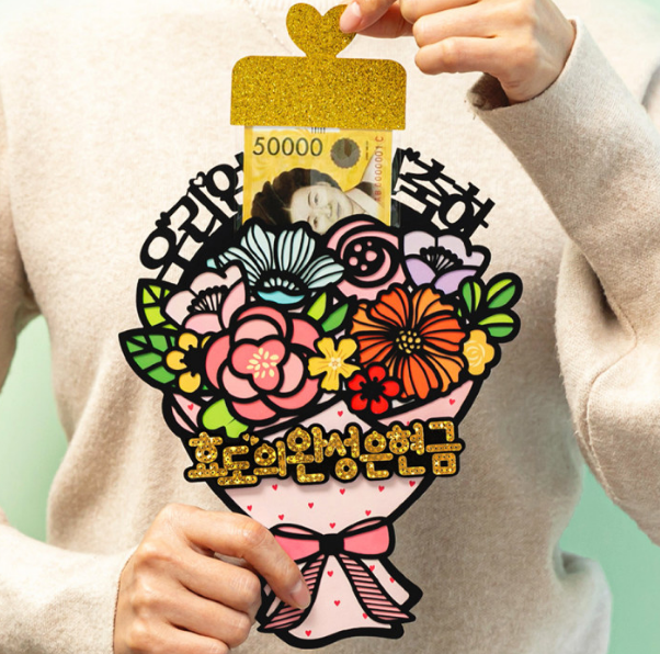 상품 주문시 현금을 보내면 동봉해서 제작되어 오거나, 제품 자체가 제작하기 쉬워 제품을 주문 후 받고 용돈을 스스로 끼어넣어 선물을 완성할 수 있는 형태도 있습니다.