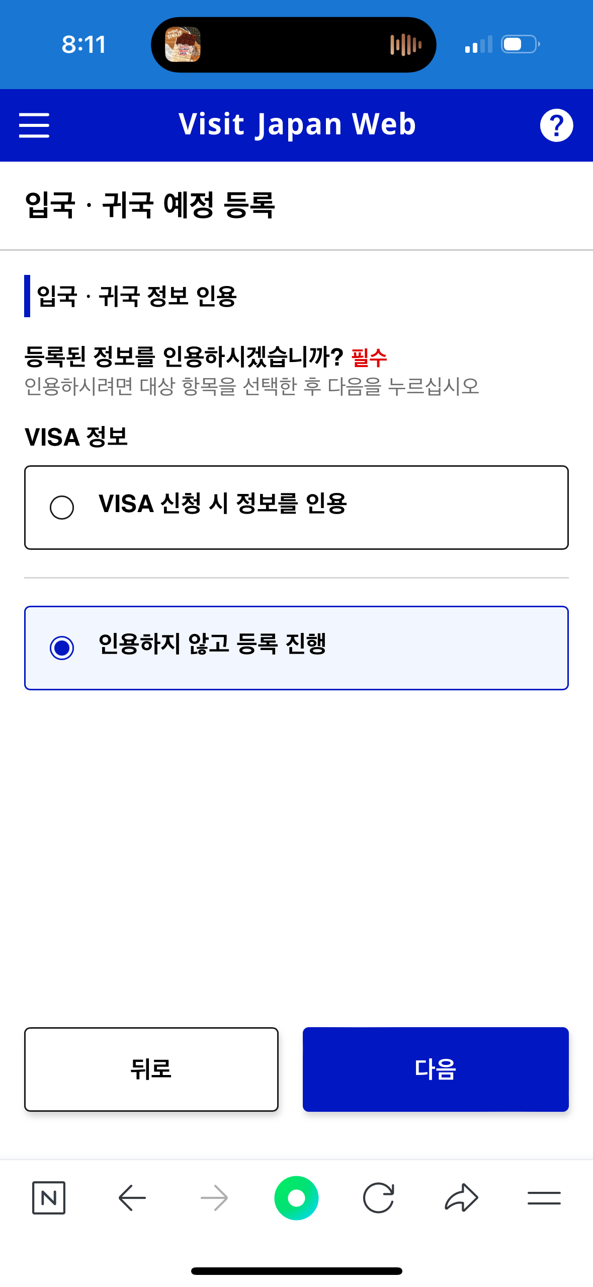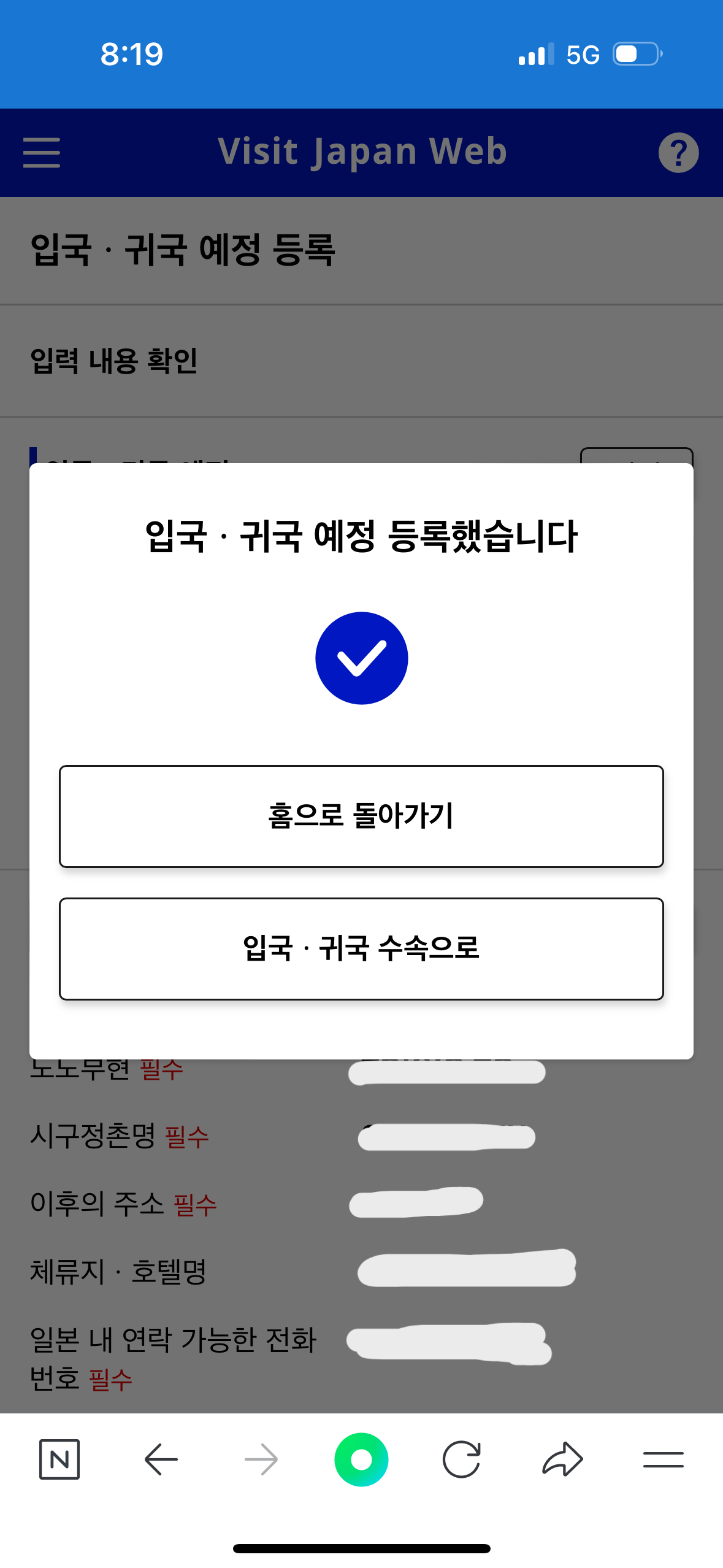 3. 비짓재팬웹 입국 귀국 예정 등록