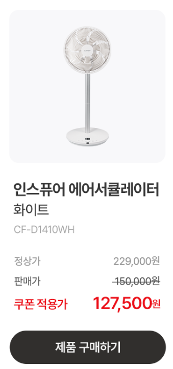 1. 쿠쿠 인스퓨어 에어서큘레이터 화이트 (CF-D1410WH)