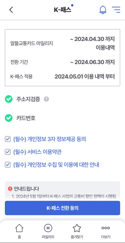 *K-패스 전환에 동의되어 5/1부터 사용하면 됩니다.