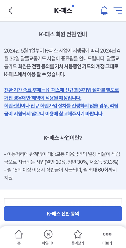 (K-패스 회원전환을 하지 않으면 전환일 또는 K-패스 신규가입일부터 혜택 적용)