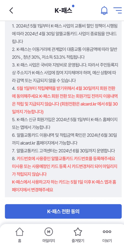 (K-패스 회원전환을 하지 않으면 전환일 또는 K-패스 신규가입일부터 혜택 적용)