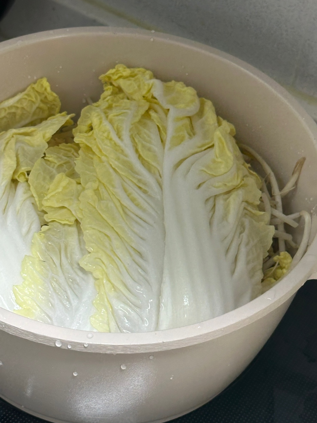 1. 냄비에 깨끗하게 씻은 알배추를 깔아줍니다. 물은 넣지 않아도 됩니다.
