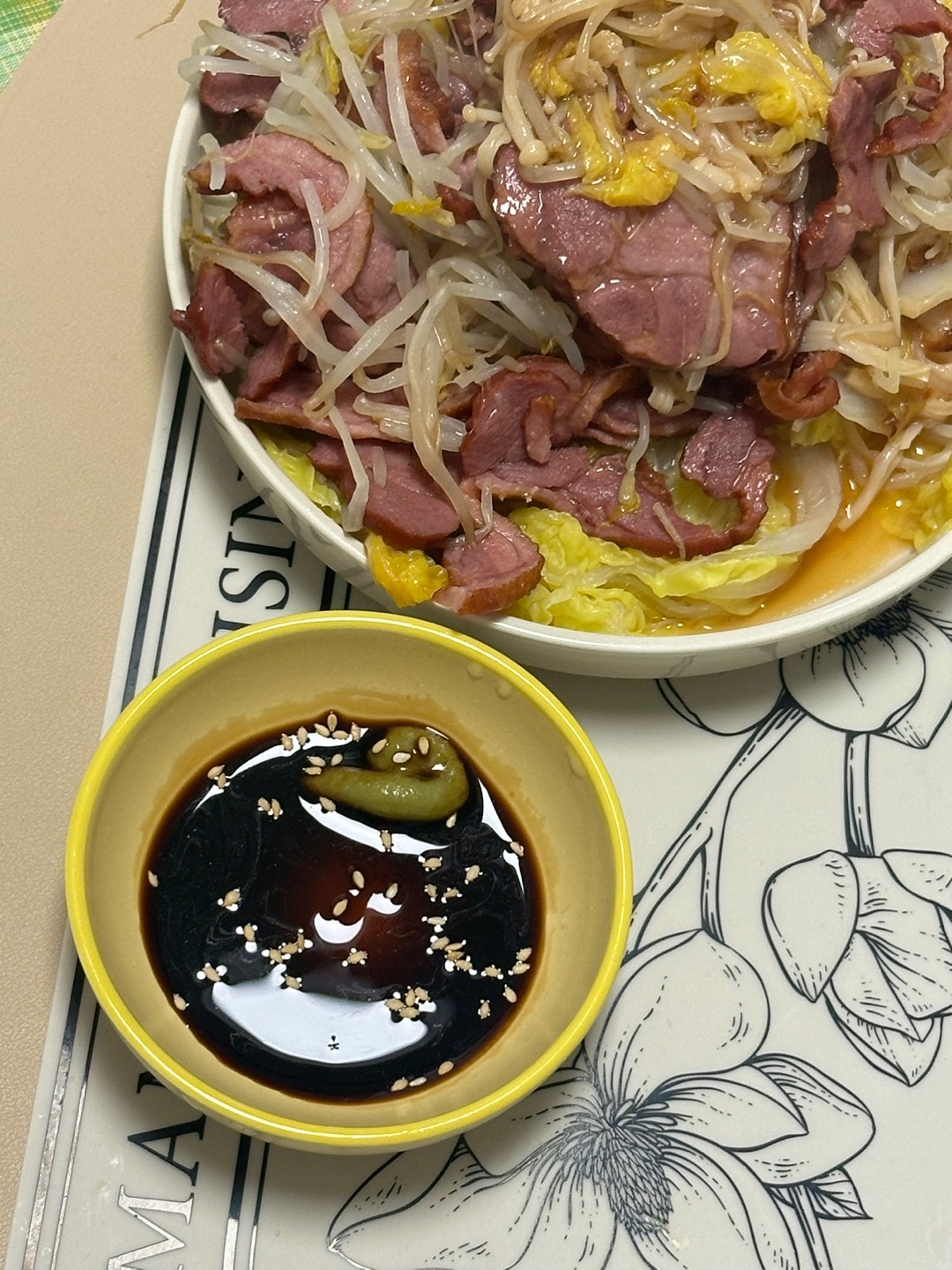 4. 오리훈제 위에 다시 숙주나물을 양껏 올려줍니다.