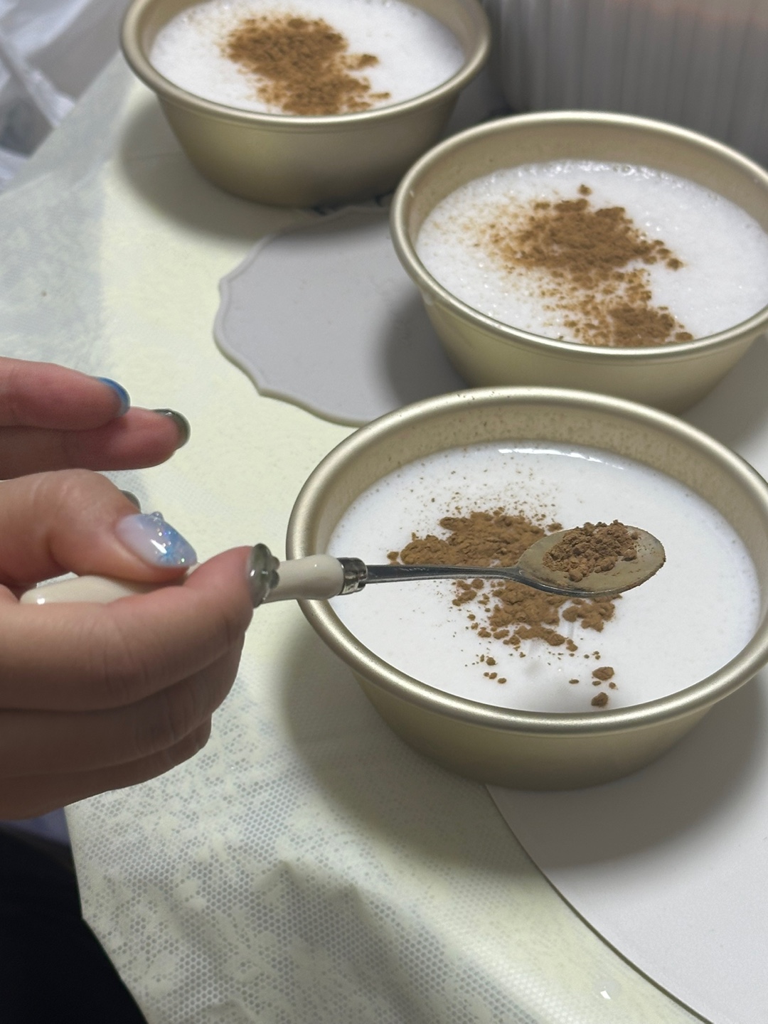 3. 생각보다 계피가루는 조금만 넣는게 좋습니다. 계피를 많이 넣으면 가루가 목에 잘 넘어가지 않아 잔에 잔여물이 많고 기침이 났습니다.