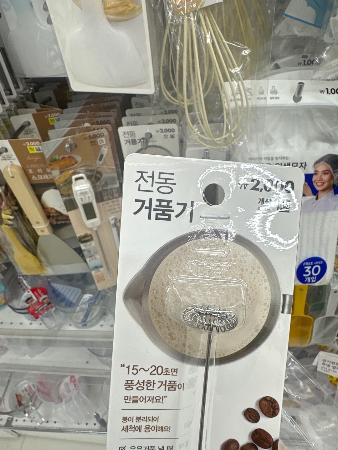 전동 휘핑기는 취급하지 않는 다이소도 많으니 없다면 쿠팡에서 구매하셔야하는데요. 쿠팡에서 전동휘핑기는 1만원이 넘는게 많아서 다이소에서 구매하시는게 저렴합니다.