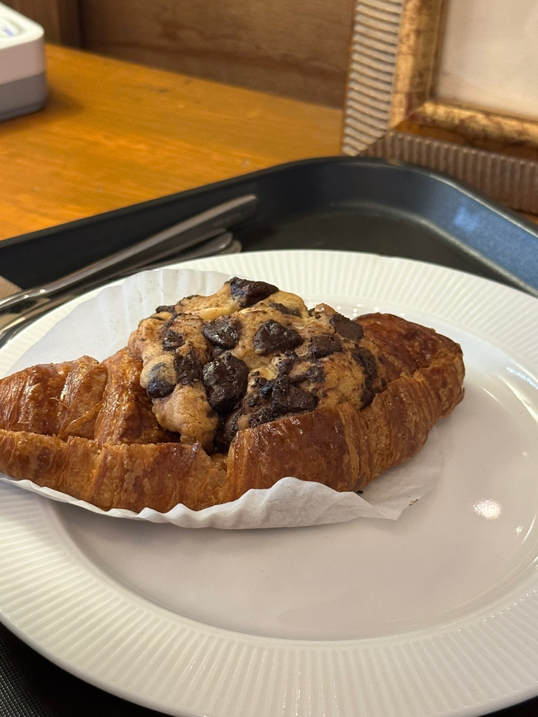저는 메뉴는 아메리카노와 크로와상에 쿠키가 올라간 디저트를 주문했습니다.